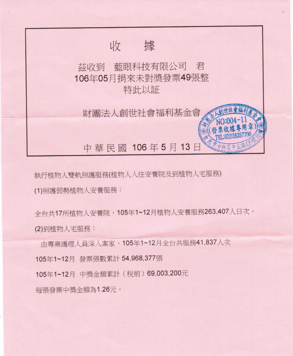 5. 您可以選擇將發票捐贈 創世基金會 ,照顧植物人做社福,大家 多多捐發票 ,社會有溫馨。